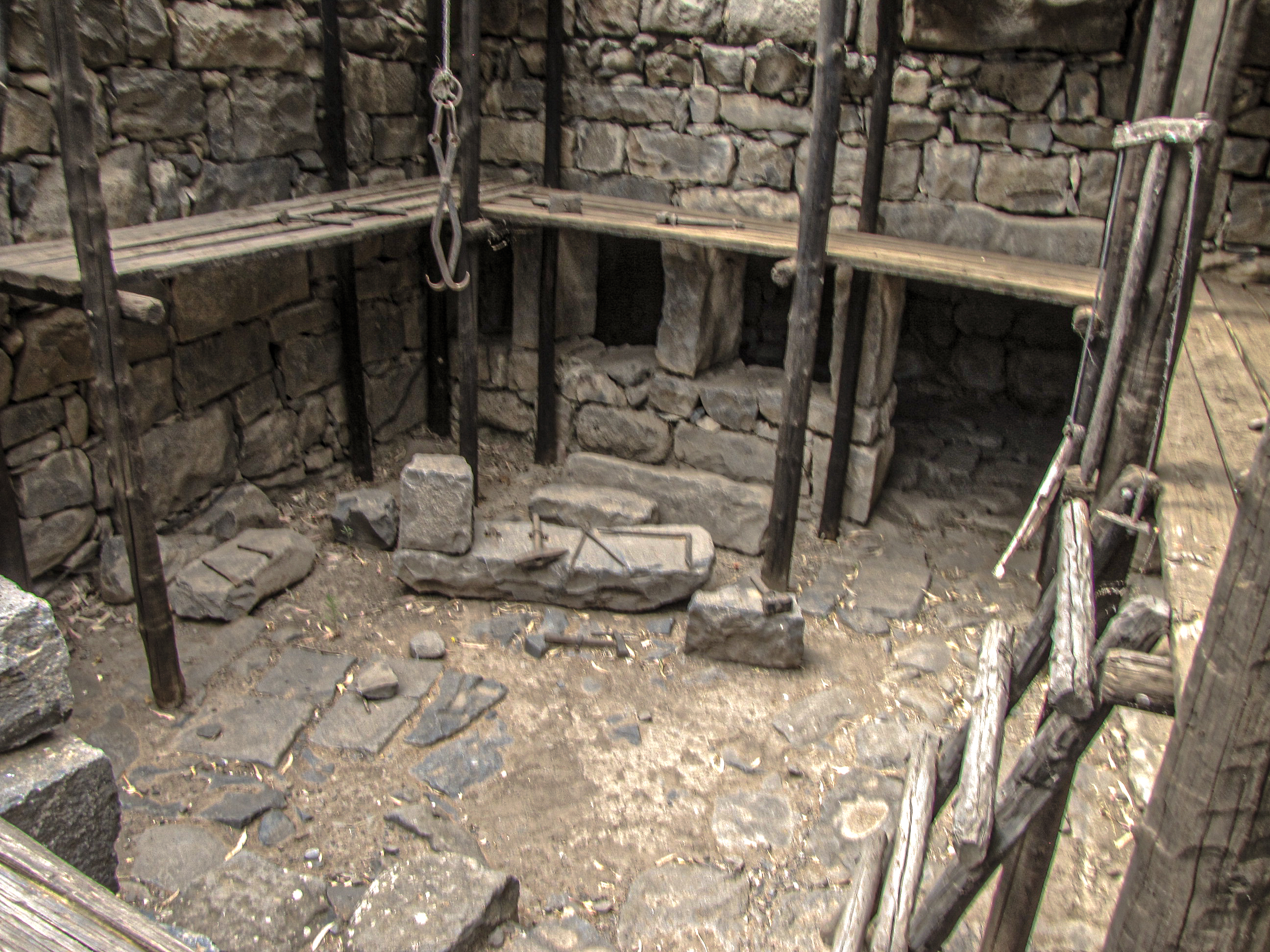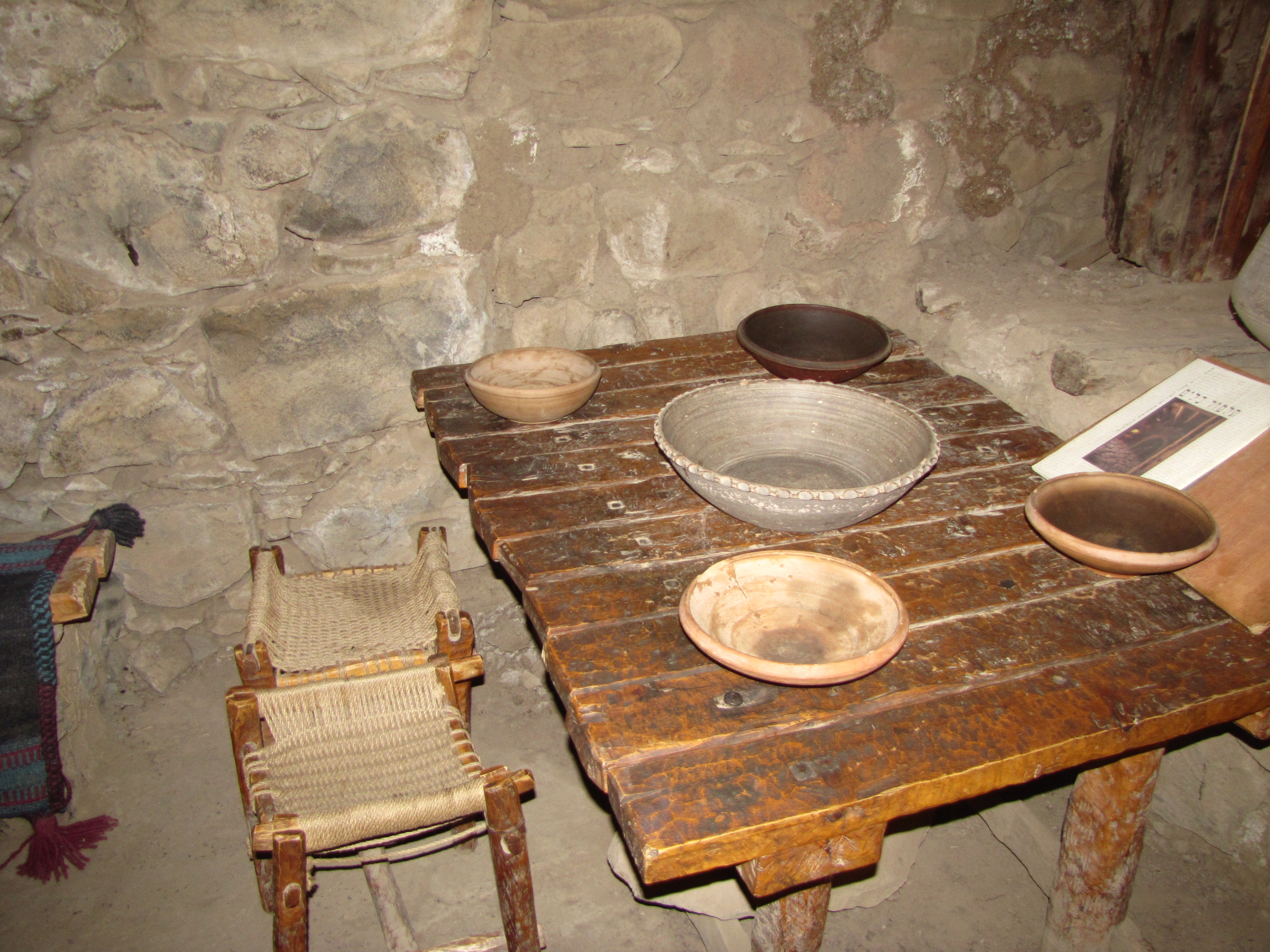An olive press is in the back that was used to press the olive oil out of the crushed olives and seeds from the grinder. |