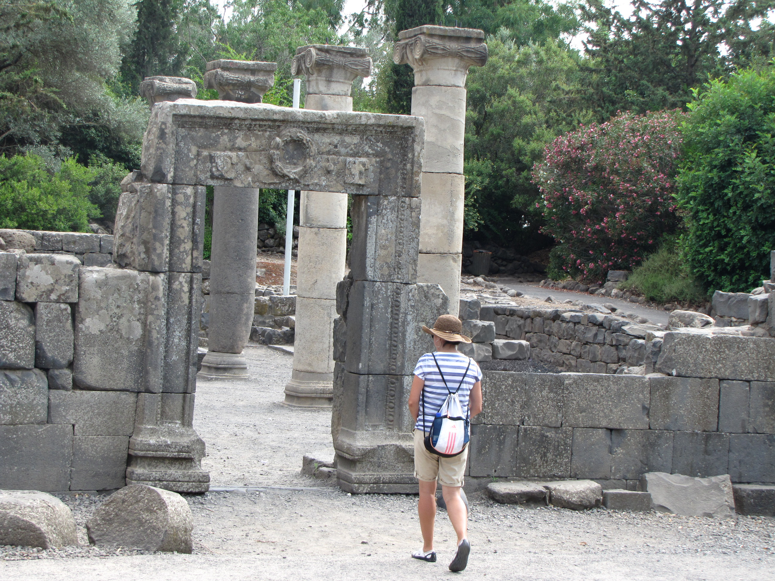 Toni walks towards the entrance of the synagogue of 300-500 AD in Katzrin. |