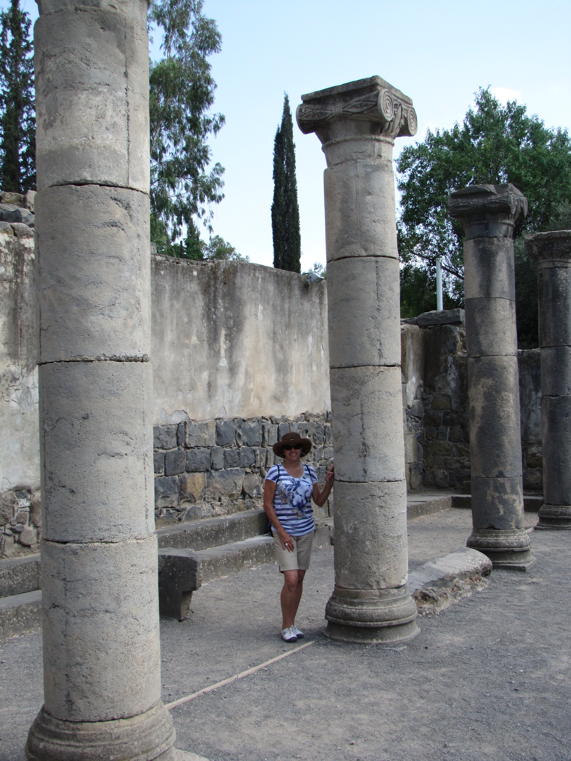 Toni standing under the Lintel over doorway of Qatsrin (Katzrin) Synagogue of 300-500 AD |